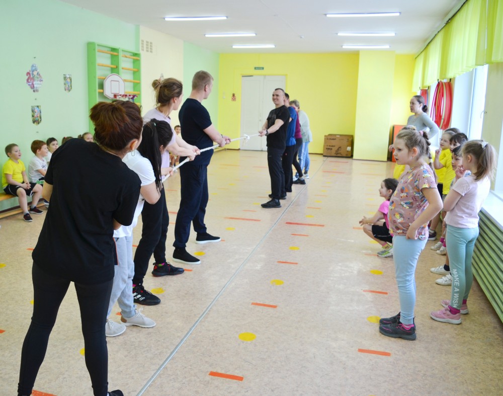 В нашем детском саду стало хорошей традицией ежегодно проводить спортивные соревнования, посвященные Дню защитника Отечества. В этом году ребята вместе с родителями проходили "Школу юного бойца" . Соревнования включали проведение эстафет: «Пехотинцы», «Танкисты», "Летчики", игра с канатом «Кто сильней».