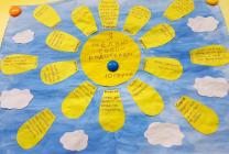 Эти желания фиксировались в виде цветных лучиков, которые затем прикреплялись к большому изображению солнца. Создание "солнышка" с пожеланиями стало не только увлекательным занятием, но и красивым визуальным символом любви и поддержки.