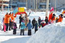 На празднике, организованном музыкальными руководителями, дети играли в народные игры, водили хороводы, пели песни, участвовали в веселых соревнованиях по метанию валенка.
